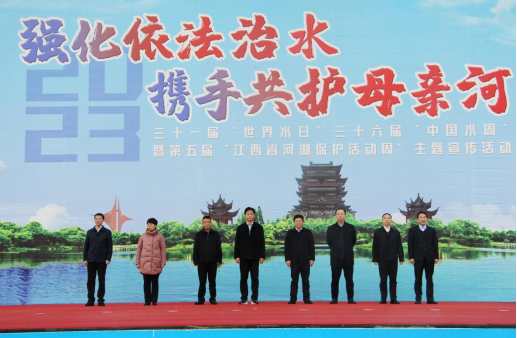 律回春晖渐,万象始更新。春江水暖的三月迎来了第三十一届“世界水日”、第三十六届“中国水周”暨第五届“江西省河湖保护活动周”。为响应今年“水日水周”主题号召,加强水资源保护和水法知识科普,掀起依法治水、爱水护水的社会热潮,3月22日,由江西省水利厅联合南昌市水利局主办、新建区水利局承办的系列宣传活动于新建区心怡广场隆重举行启动仪式。省水利厅副厅长蔡勇,市水利局局长杨先国,新建区区长王成久等领导出席活动。