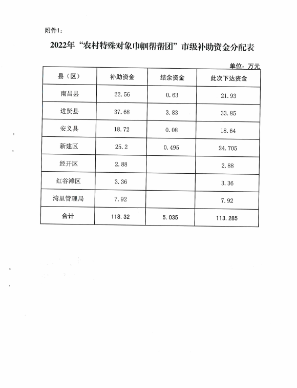 关于下拨2022年“农村特殊对象巾帼棒棒团”市级补助资金的通知