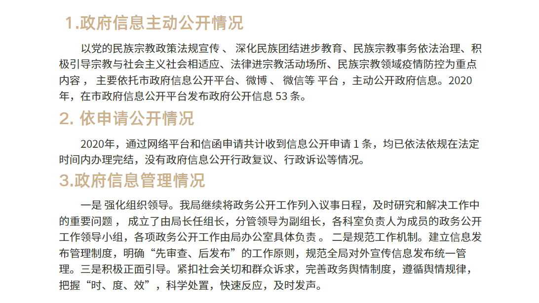 南昌市民族宗教事务局2020年政府信息公开工作年度报告图解版