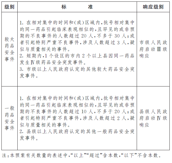 附件:1.药品安全突发事件分级标准和响应规定