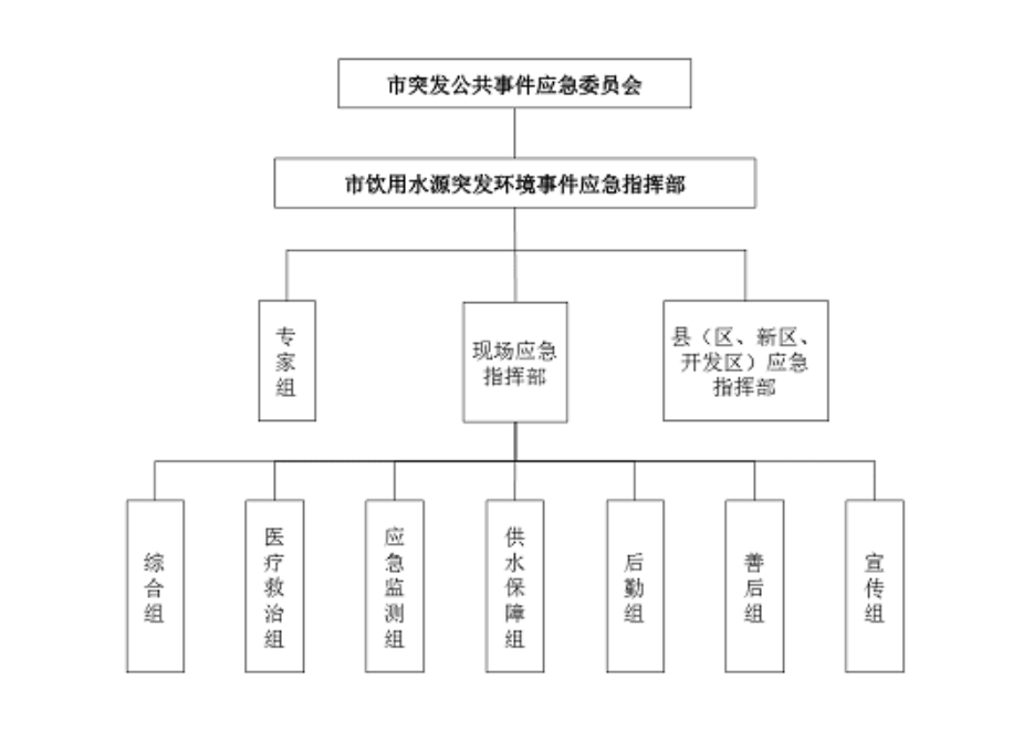 (1)贯彻执行国家、地方人民政府及有关部门关于水源地突发环境事件的各项要求; (2)组织编制、修订和批准水源地应急预案; (3)指导加强水源地突发环境事件应急管理体系建设; (4)协调保障水源地突发环境事件应急管理工作经费。 |