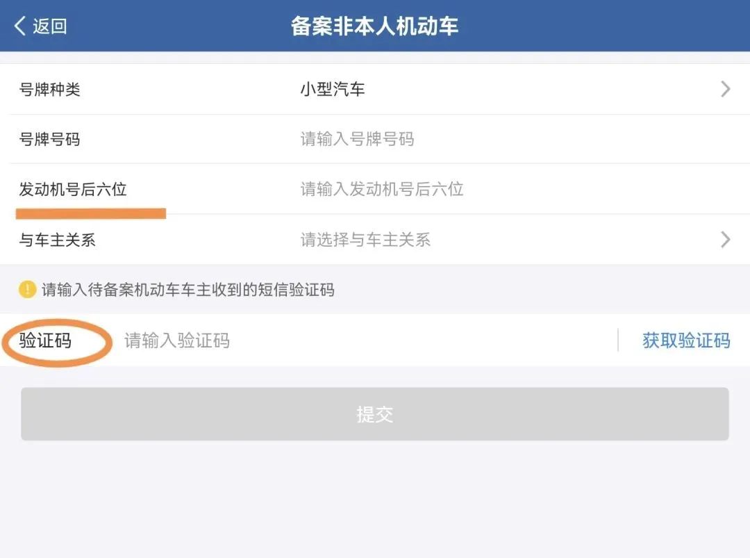 1、选择短信备案时,不少车主会填错“发动机号后六位”,务必仔细填写。